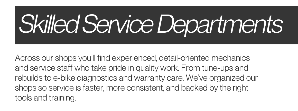 Whether it’s routine service, advanced troubleshooting, or helping riders find the right setup for steep climbs and long days in the saddle, our Park City staff brings deep product knowledge and real-world riding experience to every interaction.